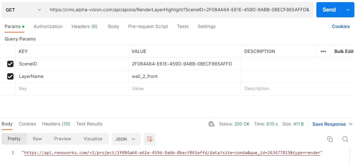 LayerName OR SurfaceName: Depending on the parameter provided. The Render will either use the Layers hardcoded in the scene or the Surfaces assigned to the layers to highlight a particular area of the scene.