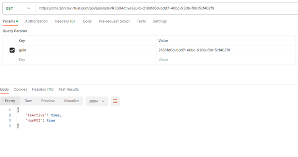 xhr.send(JSON.stringify({ "POI_ID": '42987adc-9466-48d2-b467-13e199f2028e' })); API URL : https://cms.zondavirtual.com/api/apiola/IsVR360Active?guid={VR360GUID}