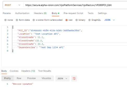 API URL : https://secure.alpha-vision.com/VpsPlatformServices/VpsRest.svc/VR360POI_Edit